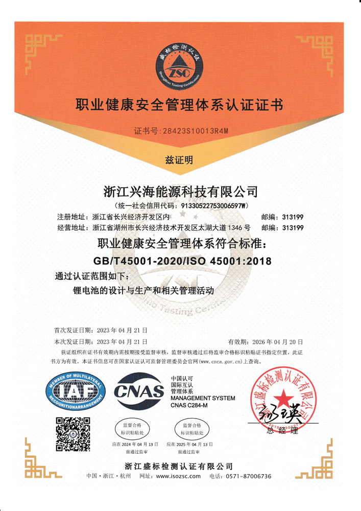 浙江興海能源科技有限公司成立于2003年,坐落在浙江省長興縣國家級經濟技術開發區,為國家級高新技術企業、浙江省專利示范企業。公司專注于鋰離子電池的研發、生產、銷售和服務,擁有自主核心專利,具有電芯和電池組的規模化生產能力,并已成長為專業的綜合能源解決方案提供商。
