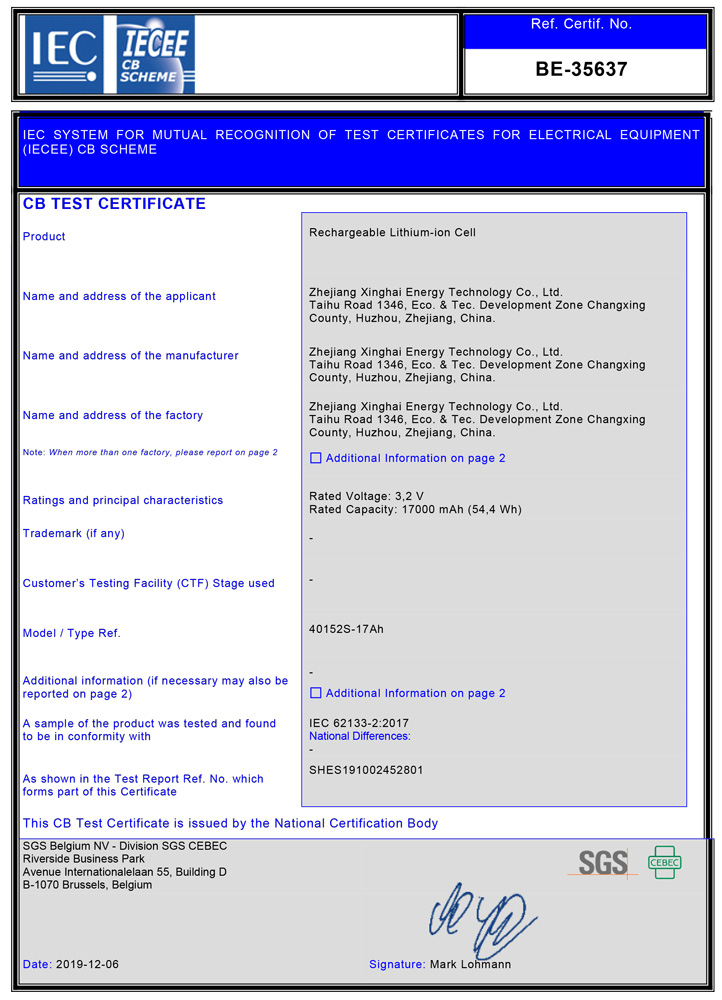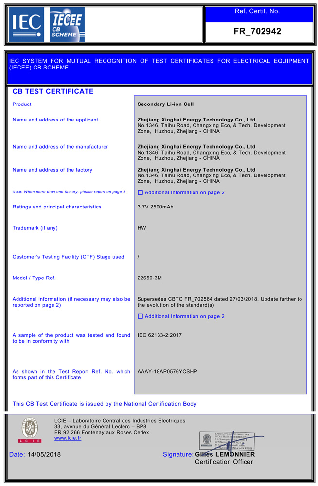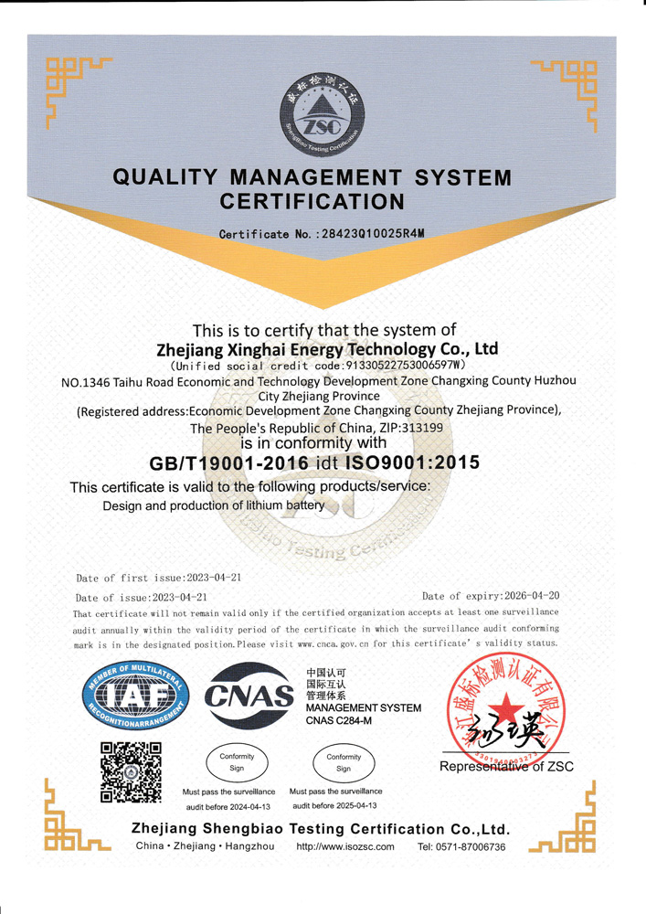 Located in the National Eco &Tech Development Zone of Changxing in Zhejiang, Xinghai Energy was established in 2003.As a national high-tech enterprise and a patent demon-stration enterprise of Zhejiang Province, Xinghai Energy has always focused on the R&D,production, sales and service of lithium-ion batteries. with independent core patents,the company has the capacity of large-scale production of cells and battery packs, andhas grown into a professional integrated energy solutions provider.