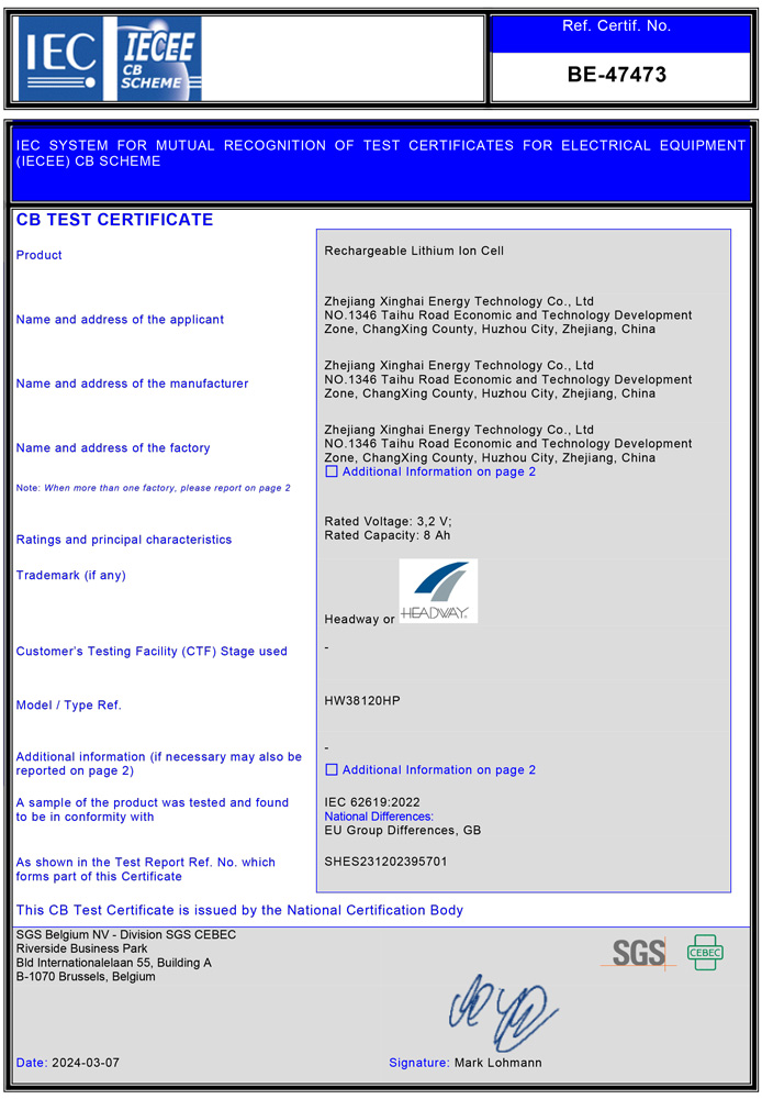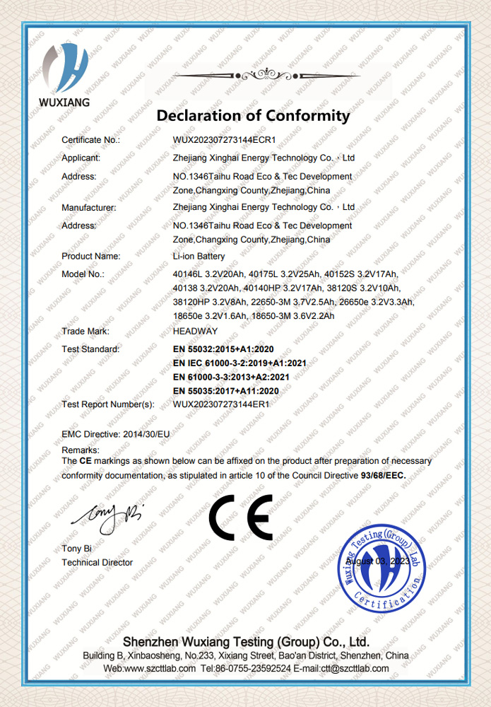 At present, Xinghai Energy has a capacity of 1Gwh watt hours, the key product is largecapacity cylindrical lithium iron phosphate cells. The main applications include AGVs,electric storage machinery such as forklifts, communication energy storage, in (off) gridenergy storage, UPS backup (emergency) power supply, etc. with its excellent perfor-mance, the Headway brand lithium batteries developed by Xinghai Energy have suc-cessfully penetrated into oversea market, mainly exported to Europe, the United States,Japan, South Korea and Southeast Asia, enjoying a high popularity and reputation in oc-cupied markets.