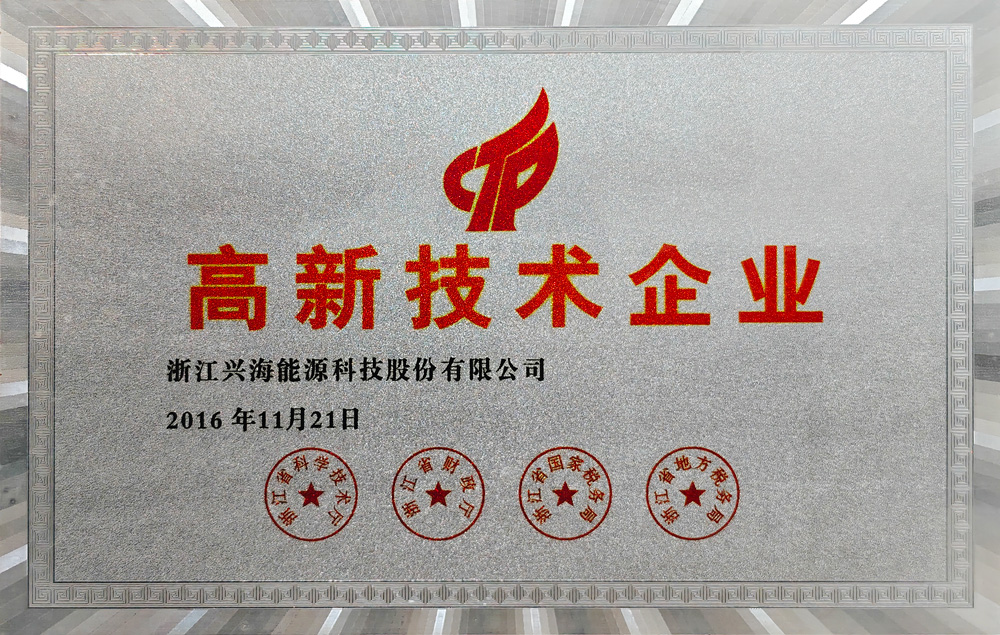Since its establishment,Xinghai Energy has participated in a number of national andprovincial major projects, including 3 industrialization projects of National Torch pro-gram, 2 major science and technology special projects of Zhejiang Province and 3 tech-nology innovation fund projects of small and medium-sized science and technology en-terprises.